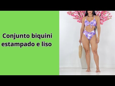 Conjunto biquíni estampado e liso verão piscina moda praia poliamida biq...